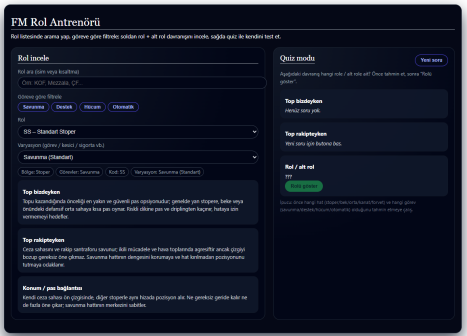 '''Rol Antrenörü'''; Football Manager’daki tüm temel roller ve görevler için: